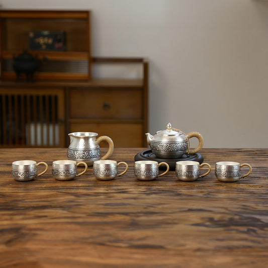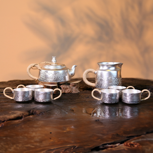 Kung Fu Hand-Hammered Silver Teapot City Chisel Tea Set