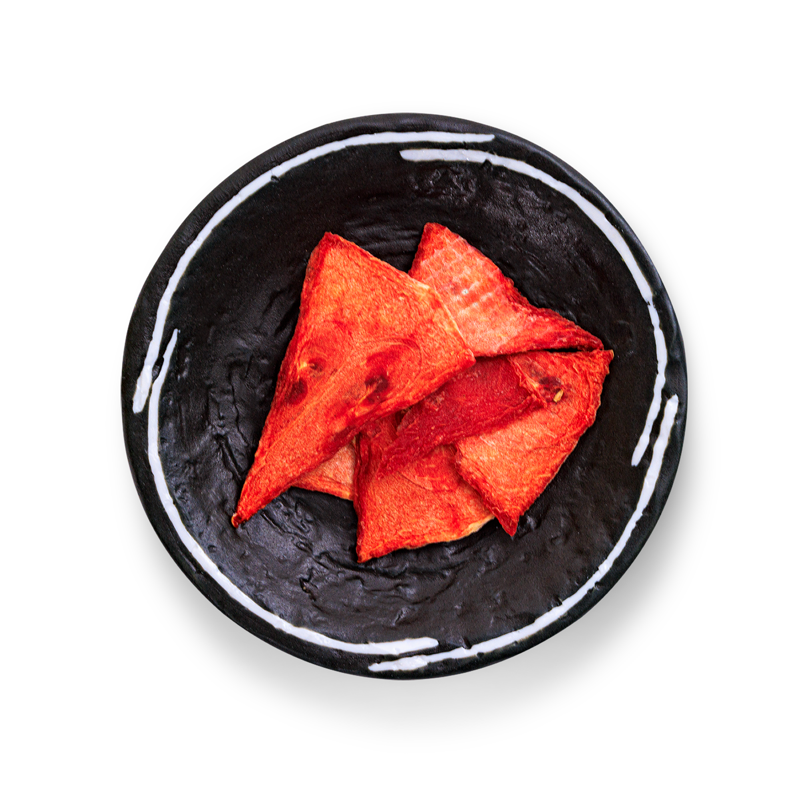 Ideca is a restaurant cafe located in Nabari City, Mie Prefecture. They create dishes and sweets using homegrown fruits. This dried watermelon consists solely of watermelon as its ingredient. The natural sweetness is condensed into small pieces.