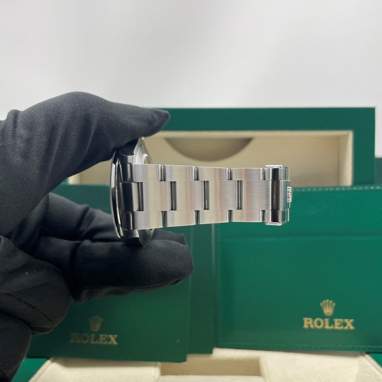 The Rolex Air-King 126900-0001 brings aviation heritage into the modern age with a bold, unmistakable presence. Its striking black dial with vibrant green and yellow accents captures the spirit of cockpit instruments, while the upgraded 40 mm Oystersteel case and new crown-guard design add a sportier, more contemporary edge. Powered by the next-generation Calibre 3230, it delivers precision and reliability that echo Rolex’s legacy in exploration and flight. The mix of rugged durability and refined aesthetics makes the Air-King a watch you wear not just for timekeeping, but for the statement it makes — confident, adventurous, and unapologetically original. This is a Rolex built for those who carve their own flight path.