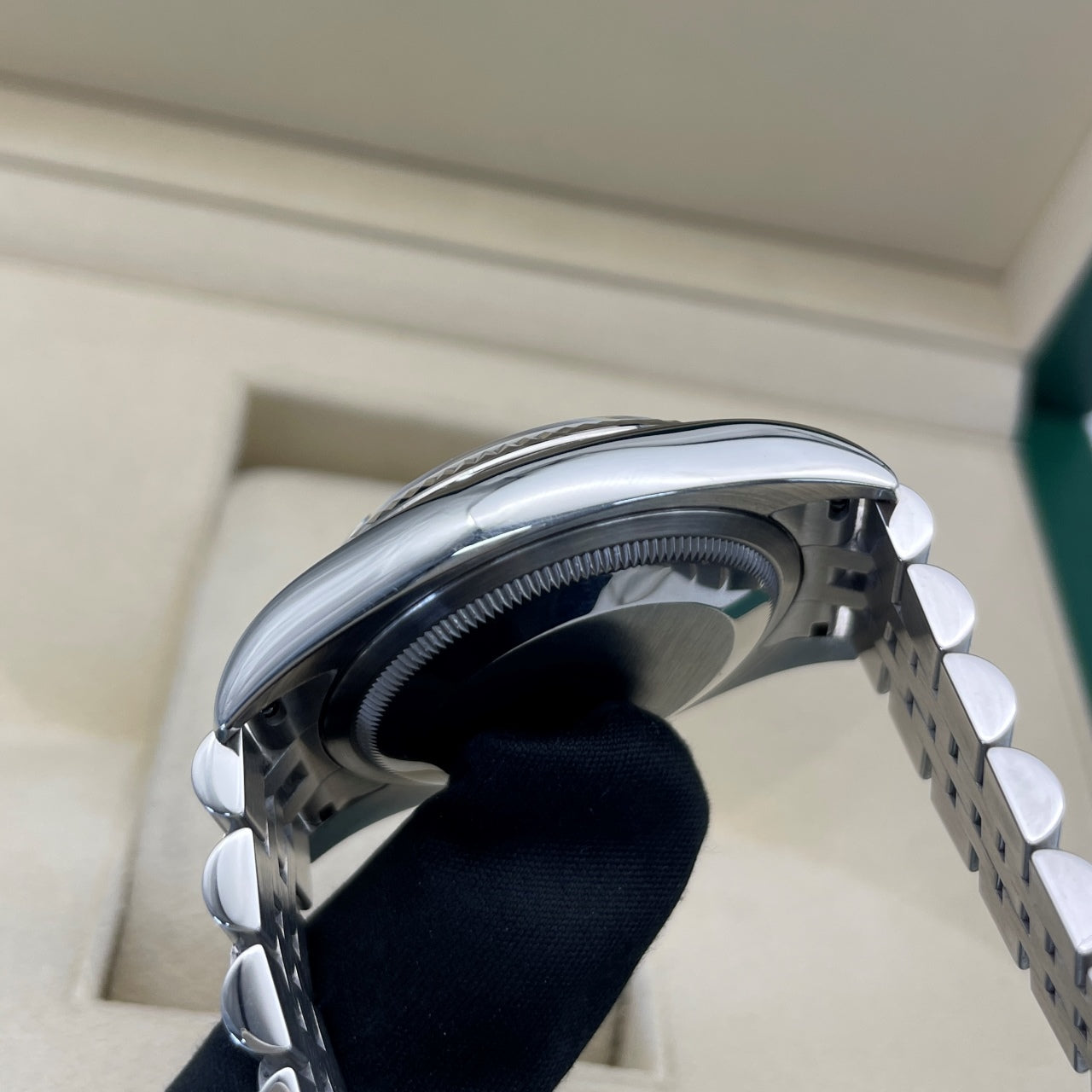 With its striking black-and-silver “Tuxedo” dial and concentric ring design, the Rolex Datejust 116234 commands attention while remaining effortlessly refined. Set in a sleek 36 mm stainless steel case crowned with an 18k white-gold fluted bezel, this piece exudes quiet sophistication. Powered by the trusted Calibre 3135 self-winding movement, it delivers reliable performance day in and day out. The Jubilee bracelet drapes the wrist with a soft, elegant feel — making this Datejust more than a timepiece; it’s a sophisticated statement of style and substance for the discerning collector.