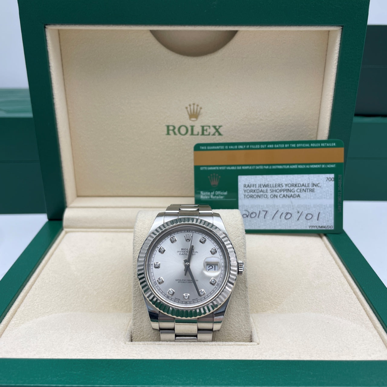 Pre-owned Rolex Datejust 41mm Men's Watch - ref 116334 Diamond-Silver Dial (2017)
