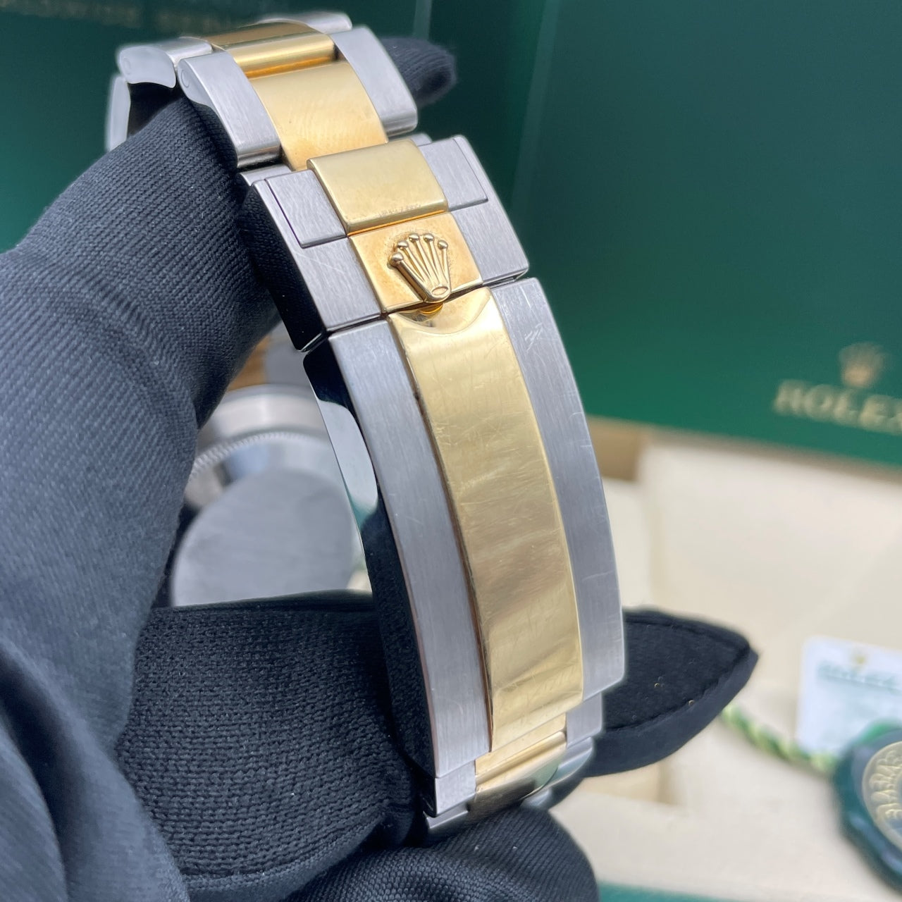 The Rolex Submariner Date 126613LN is where adventure meets elegance. Crafted from Rolex’s signature blend of Oystersteel and 18k yellow gold, its black Cerachrom bezel and glossy dial radiate a quiet power that commands attention both underwater and in the boardroom. Inside beats the precise Calibre 3235 movement, offering flawless reliability and a 70-hour power reserve. The luminous Maxi markers glow with confidence in the dark, while the Glidelock clasp ensures a perfect fit on every wrist. More than a dive watch, the 126613LN embodies timeless prestige—an icon for those who pursue excellence and expect nothing less than brilliance.