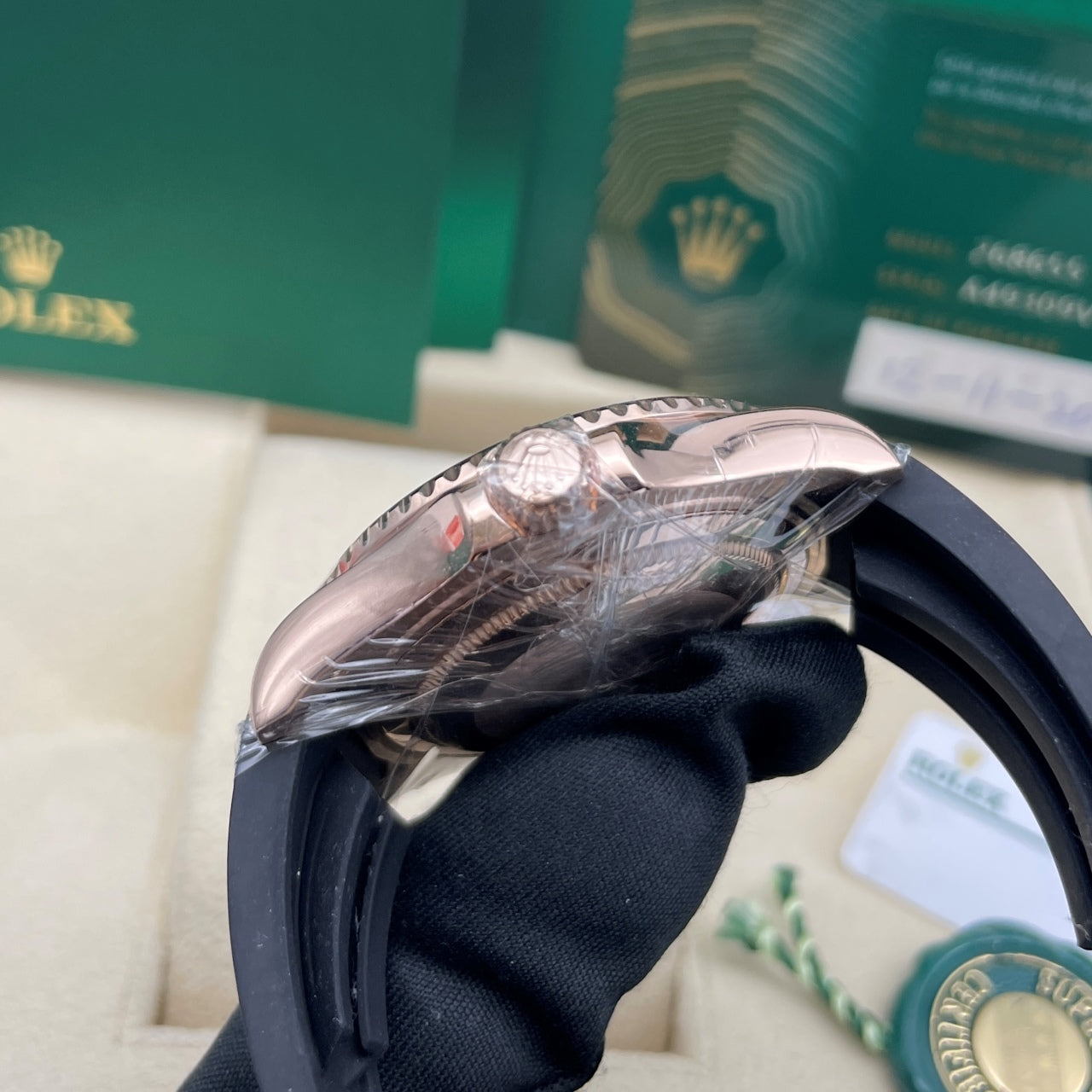 The Rolex Yacht-Master ref. 268655-0010 is the ultimate expression of sporty luxury redefined. Cast in lustrous 18 kt Everose gold, the 37 mm case delivers elegant proportions, while the black Cerachrom bezel and matching black dial infuse a bold, modern edge. Powered by the in-house Calibre 2236, this Swiss chronometer offers robust performance with a stylish attitude. Securely fastened with a black Oysterflex strap, the watch moves seamlessly from deck to dinner table, from precision timing to timeless design. For those who demand refined craftsmanship and versatility in one exceptional timepiece, the 268655-0010 stands as a signature statement of style and sophistication.