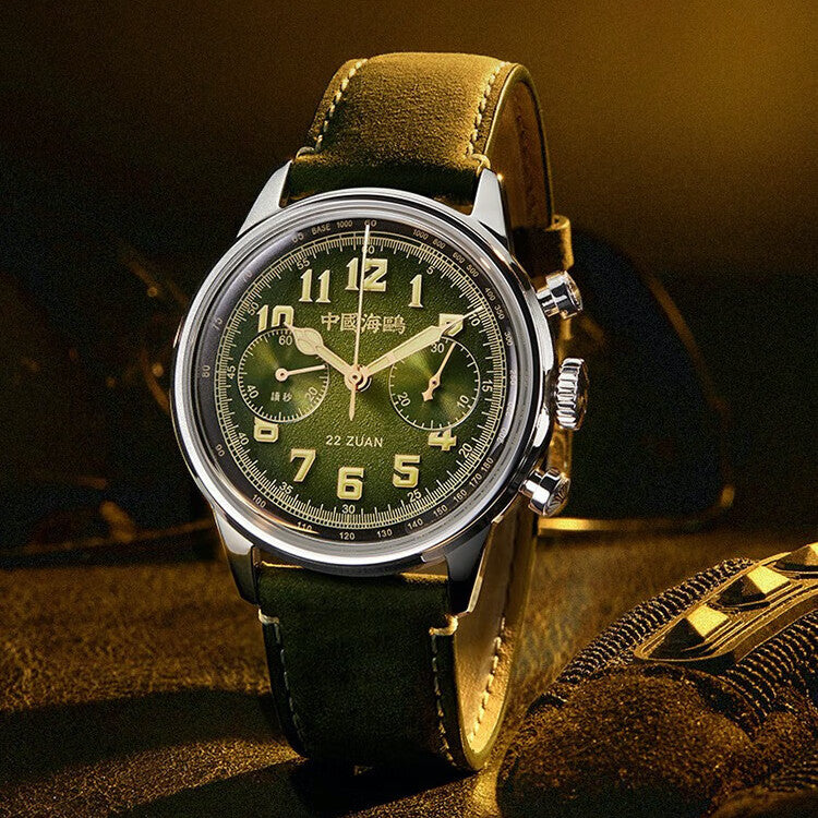 Independently developed movement, inheriting innovation. Sea-Gull's independently developed ST19 chronograph movement, manually wound, allowing you to experience the charm of mechanics. The chronograph buttons feature a radial texture design, rugged yet retro.