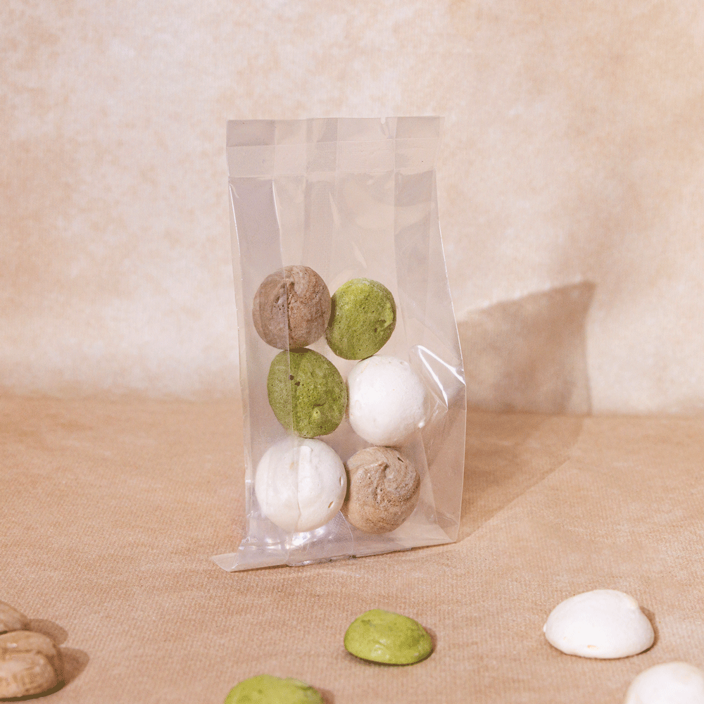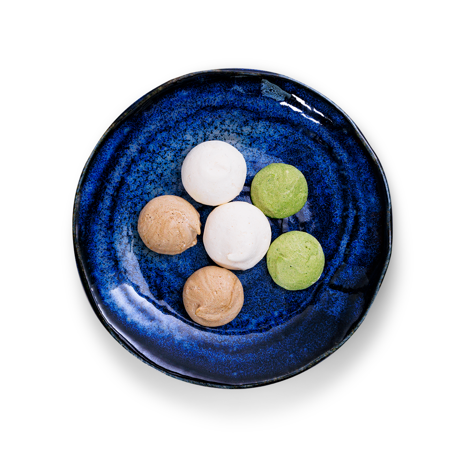 The brown one is hojicha flavor, and the green one is matcha flavor. At le mauve, they have implemented a system of employment support to aid social inclusion of individuals with disabilities. These meringues are handmade by individuals with disabilities.